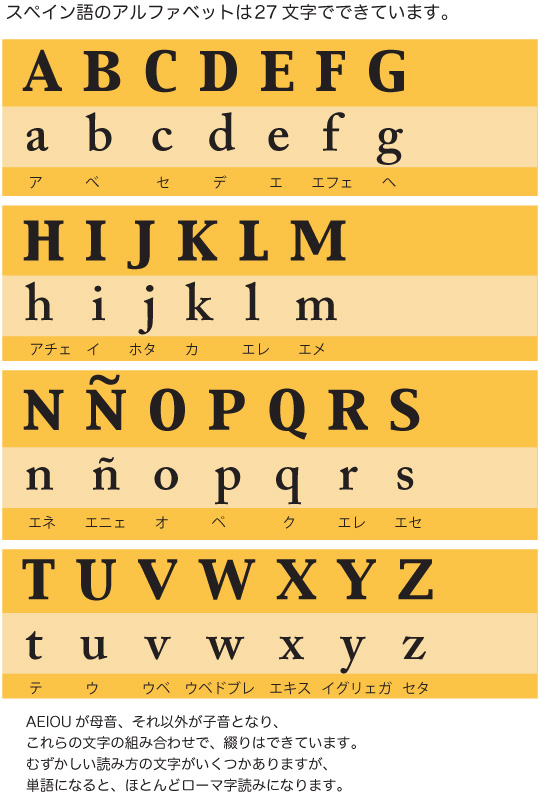 それでは、スペイン語を学ぶにあたって、まずはアルファベットから見てみましょう!